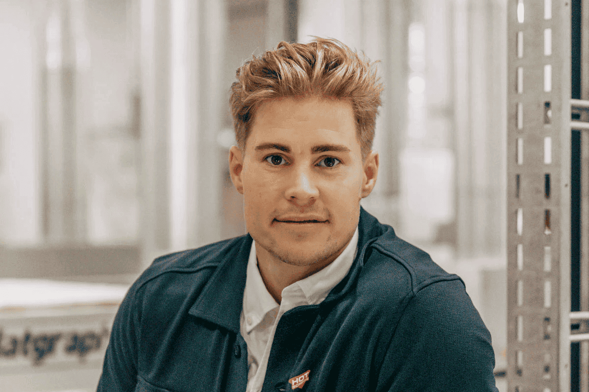 Oskar är 32 år och har arbetat på Hot Screen hela sitt yrkessamma liv. I april 2022 blev han vår nya tryckeriansvarig, något som passar en ”envis lagspelare som gillar ordning och reda”, som han beskriver sig själv. Vi ser och uppskattar hans drivenhet, liksom han uppskattar farten och variationen i sitt jobb.