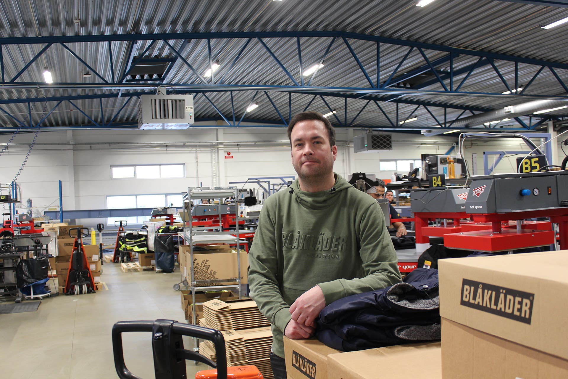 In the VAS department, over 50 employees print Blåkläder’s clothes and then send them out into the world. At each Hot 4000 heat press there are stacks of cartons marked with the Blåkläder logo. There are many heat transfers per day, and a lot of contact with our sales support. Andreas thinks that we have high delivery precision and that what we deliver is of very good quality.